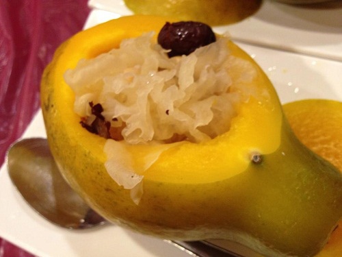 Sweet Whole Papaya Dessert (Jujubi 紅棗 + Snow Fungus雪耳)[/caption]